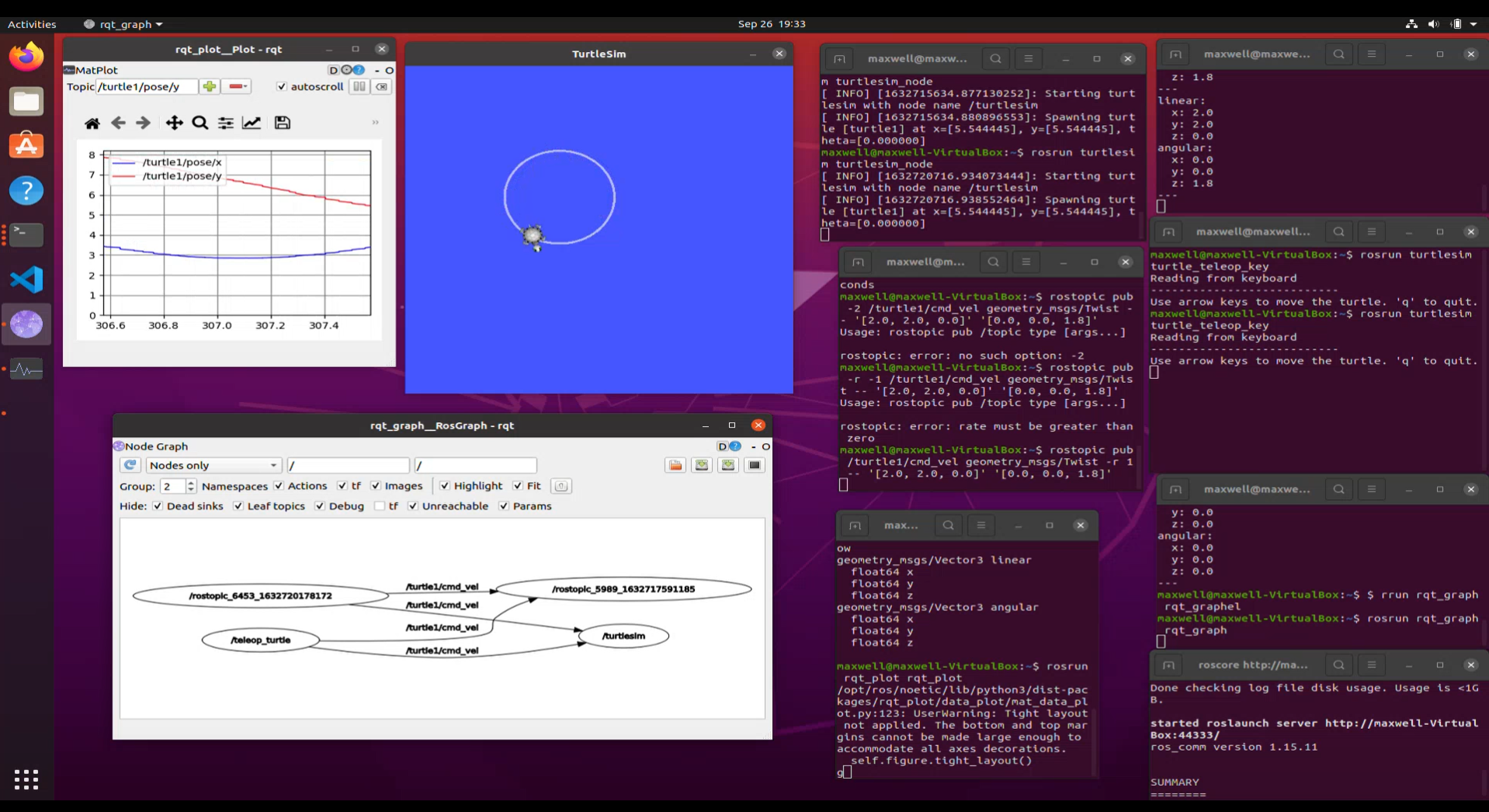 ROS is an open source robotics middleware suite and is the premier framework for robotic rapid prototyping. The ROS wiki is an outstanding resource to learn more so I won’t go into detail here. The project uses ROS for the majority of the robot’s communication between components and functionality. Each software developer on the project completed the ROS Tutorials and below is a demonstration of ROS nodes talking to one another and executing commands.